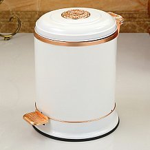 Высокое, привлекательное ведро для мусора. В качестве декора, ведро располагает красивыми золотыми вставками на корпусе. Педаль для поднятия крышки так же выполнена в цвете золота.